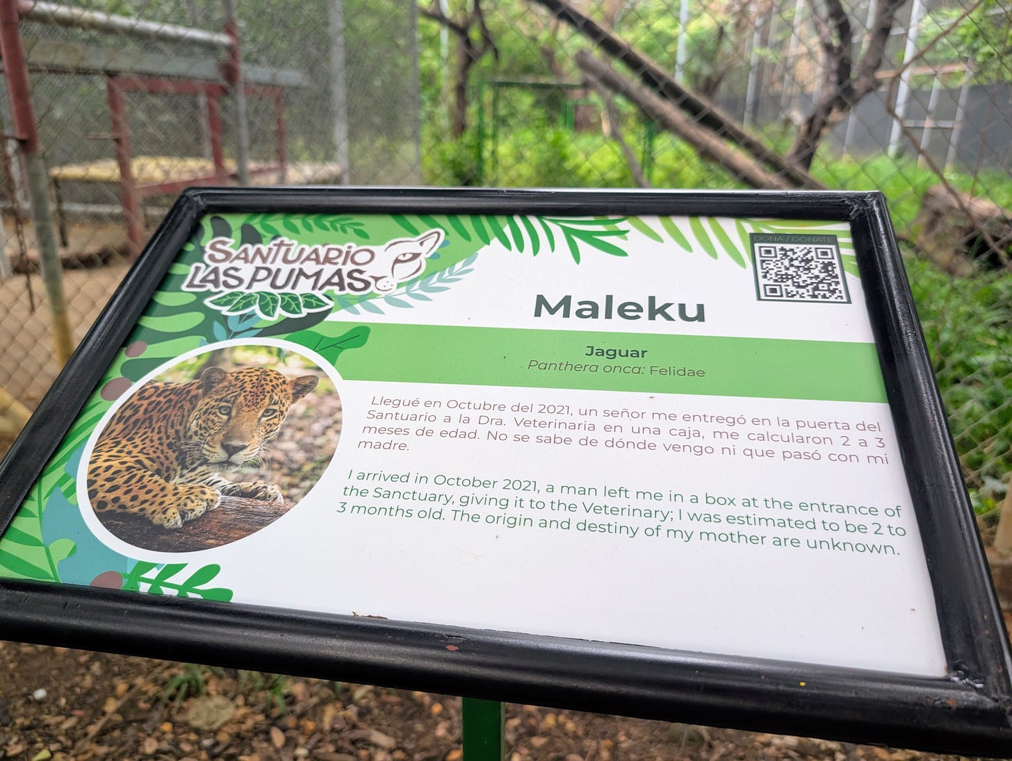Each habitat also had a plaque telling the story of the animal and how it got there. A couple monkeys were brought there as babies after their mother was “electrocuted” which I hadn’t considered as a major threat, but of course makes sense with power lines crisscrossing the wild lands.